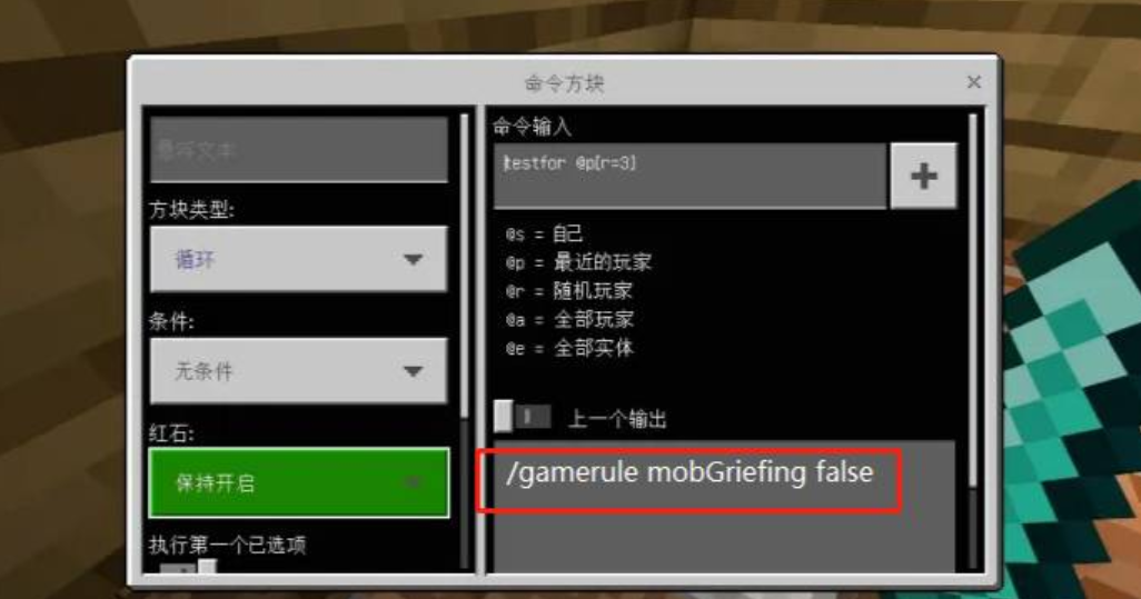 首頁 我的世界 問答 我的世界如何關閉tnt爆炸指令? 2022-08-31 在開啟作弊按鈕,輸入/gamerule mobgriefing false後即可關閉指令,如圖所示,還有很多的指令是可以使用的,並且是無條件的,方塊類型是循環。