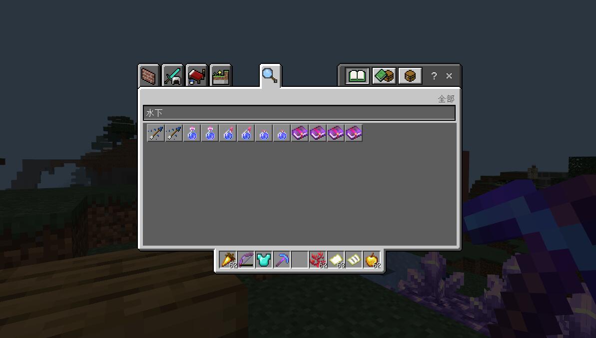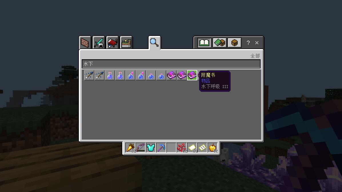 1,首先我們打開創造模式,進入背包搜索水下呼吸。
