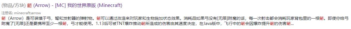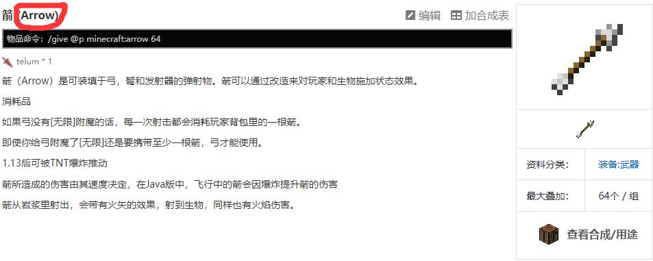 2,然後就可以在上方發現,我的世界箭的英文是Arrow了。
