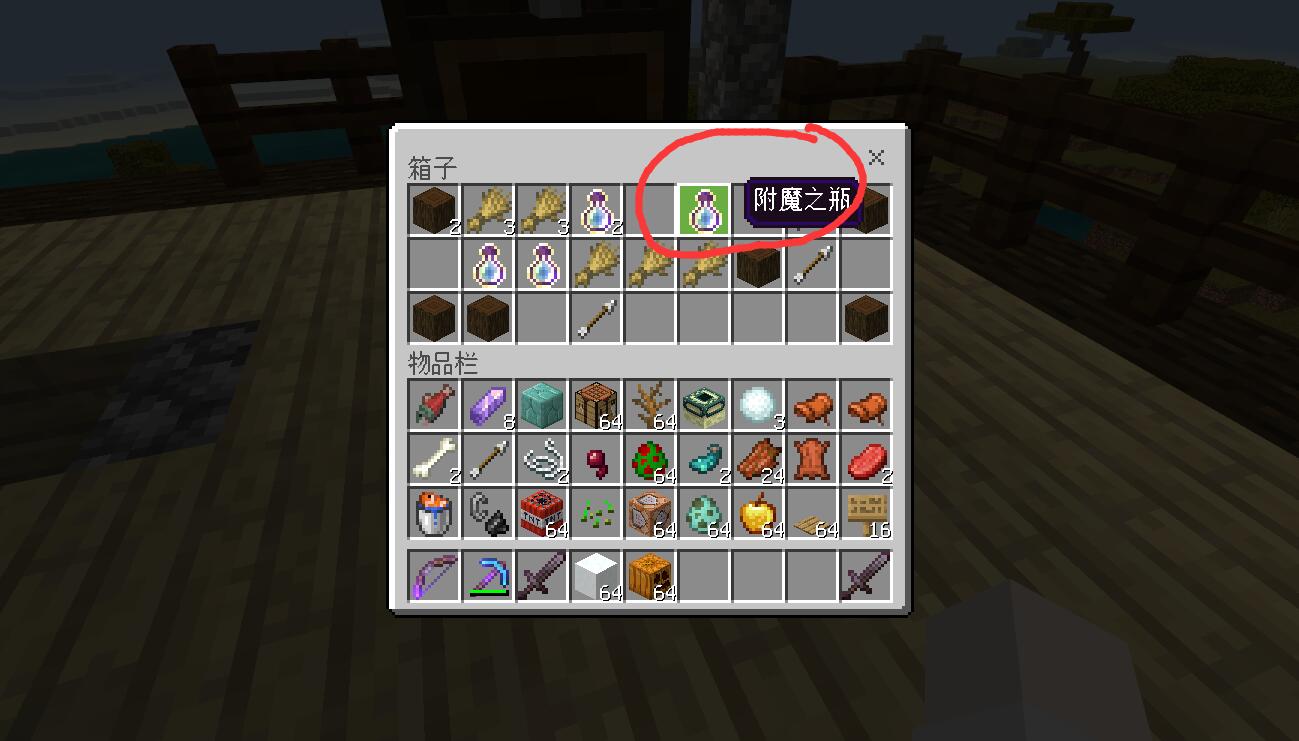 3,就可以在箱子裡面獲得經驗藥水了,也就是附魔之瓶。