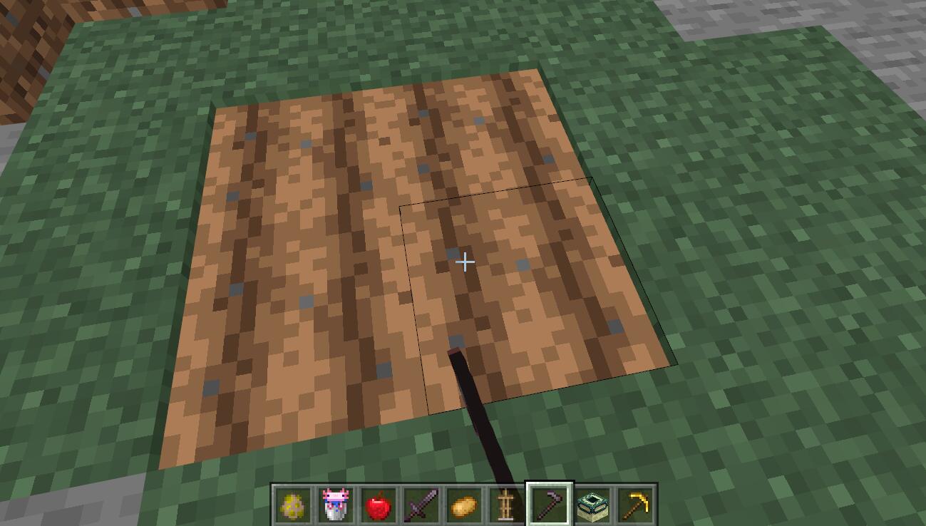 1,首先我們需要拿著鋤頭右鍵點擊草地,把草地變成耕地。