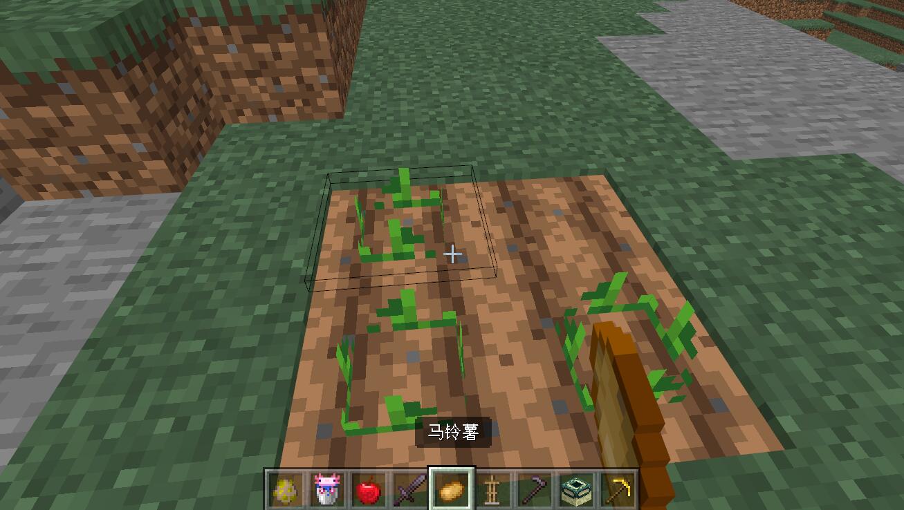2,接著我們再拿著馬鈴薯右鍵點擊耕地就可以把馬鈴薯種在耕地上了。