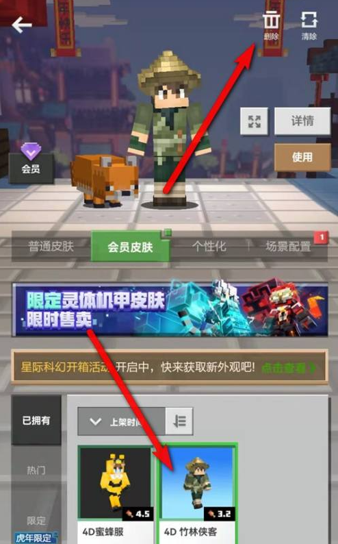 首頁 我的世界 問答 我的世界怎麼刪除皮膚? 2022-09-01 1、在我的世界手游登錄界面,點擊「外觀」。2、找到並點擊選中需要刪除的皮膚,點擊右上角的「刪除」圖標。3、點擊「確定刪除」即可刪除該皮膚資源。
