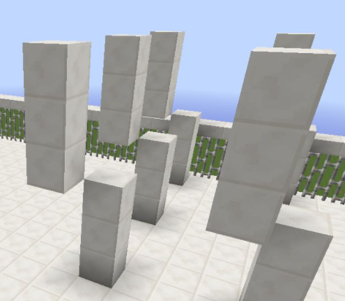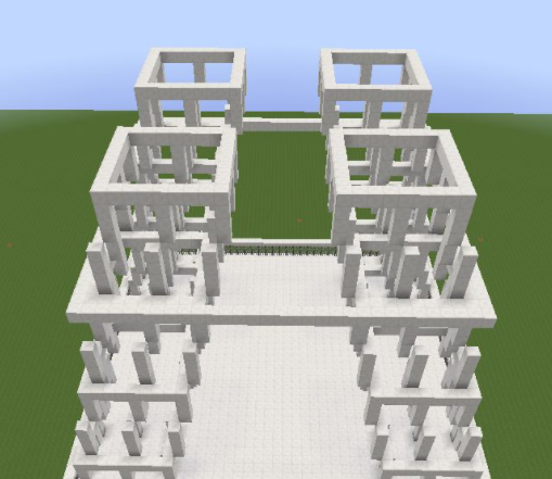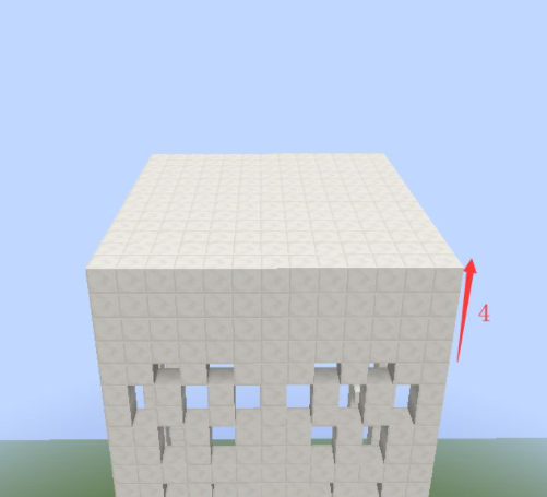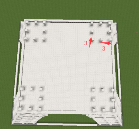 14、上方4個角分別開始每間隔3格放一個3格高的柱子;