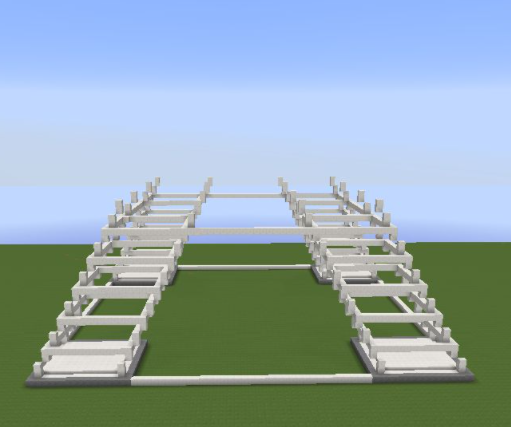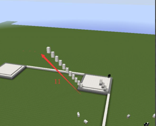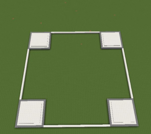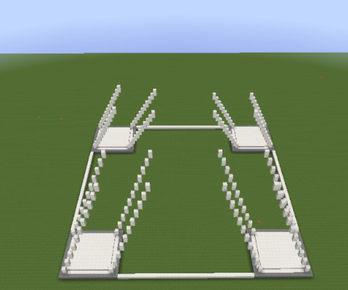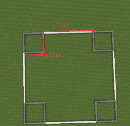 1、先建造一個正方形區域,四個角分別是15X15的方形區域,間隔35格;