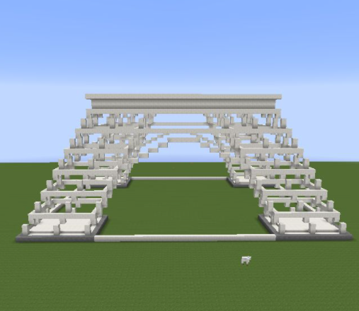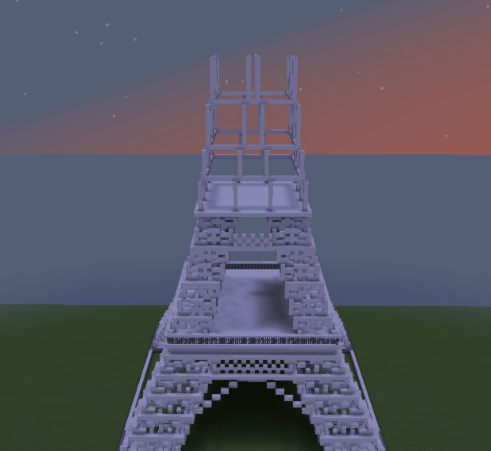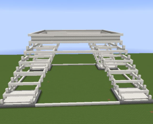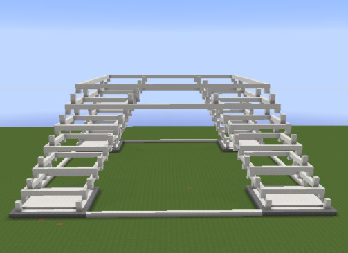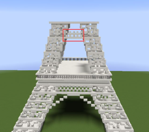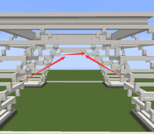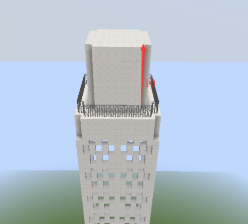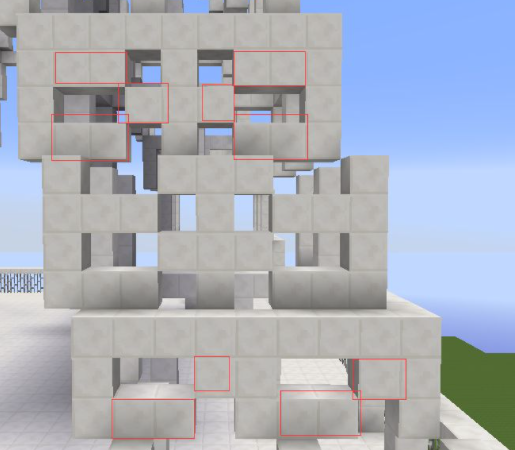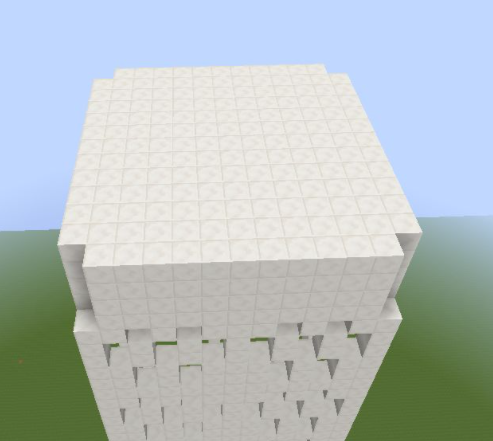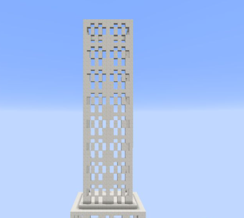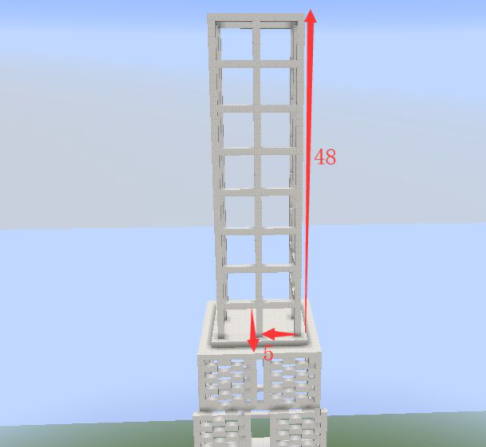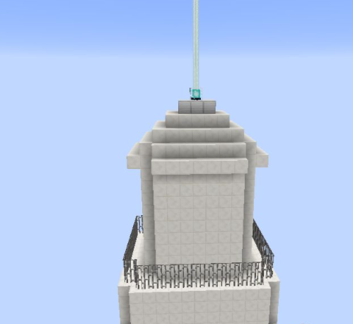 31、將第十層高的方塊向外擴一格,然後按照第二層收一格,按照這個方式一直到頂層3X3的區域用鐵塊代替石英塊,中間放一個信標。再將房子的中間一格掏空;