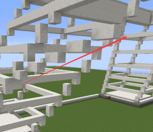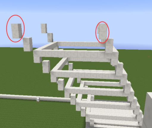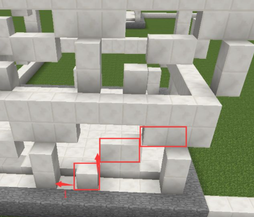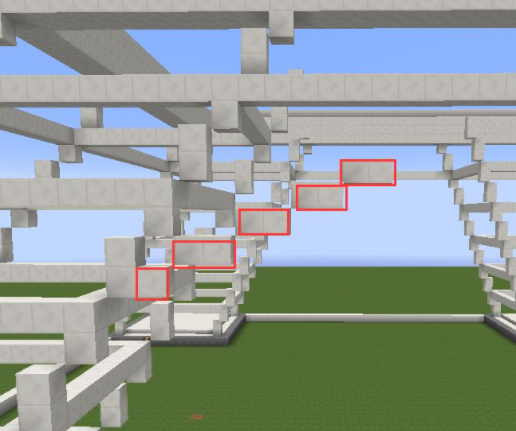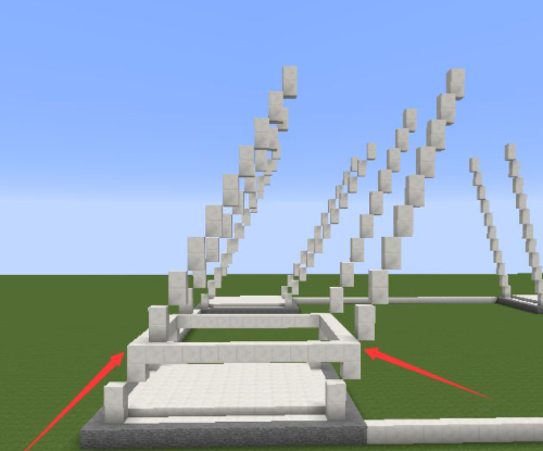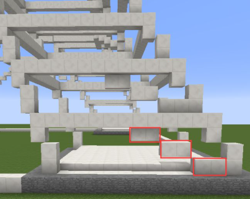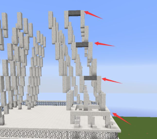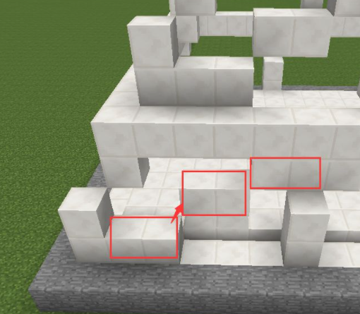 4、從底部開始每隔一層用石英塊圍起來,圍的位置是兩格高的石英塊的最高那個;