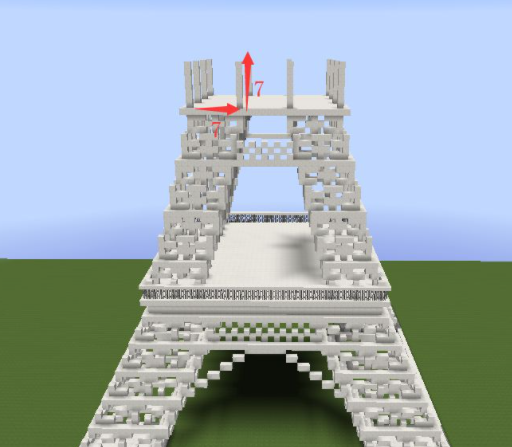 21、將最高層鋪滿,並向外擴大一格,四個角收一格,每隔7格放一個高7格的柱子;