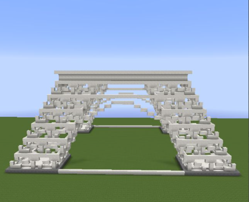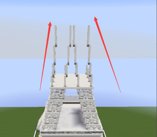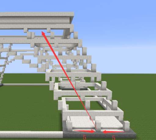 7、將最高層鋪滿石英塊,向內收一格,再鋪兩格高的方塊,再向外擴一格繼續鋪並且鋪滿;
