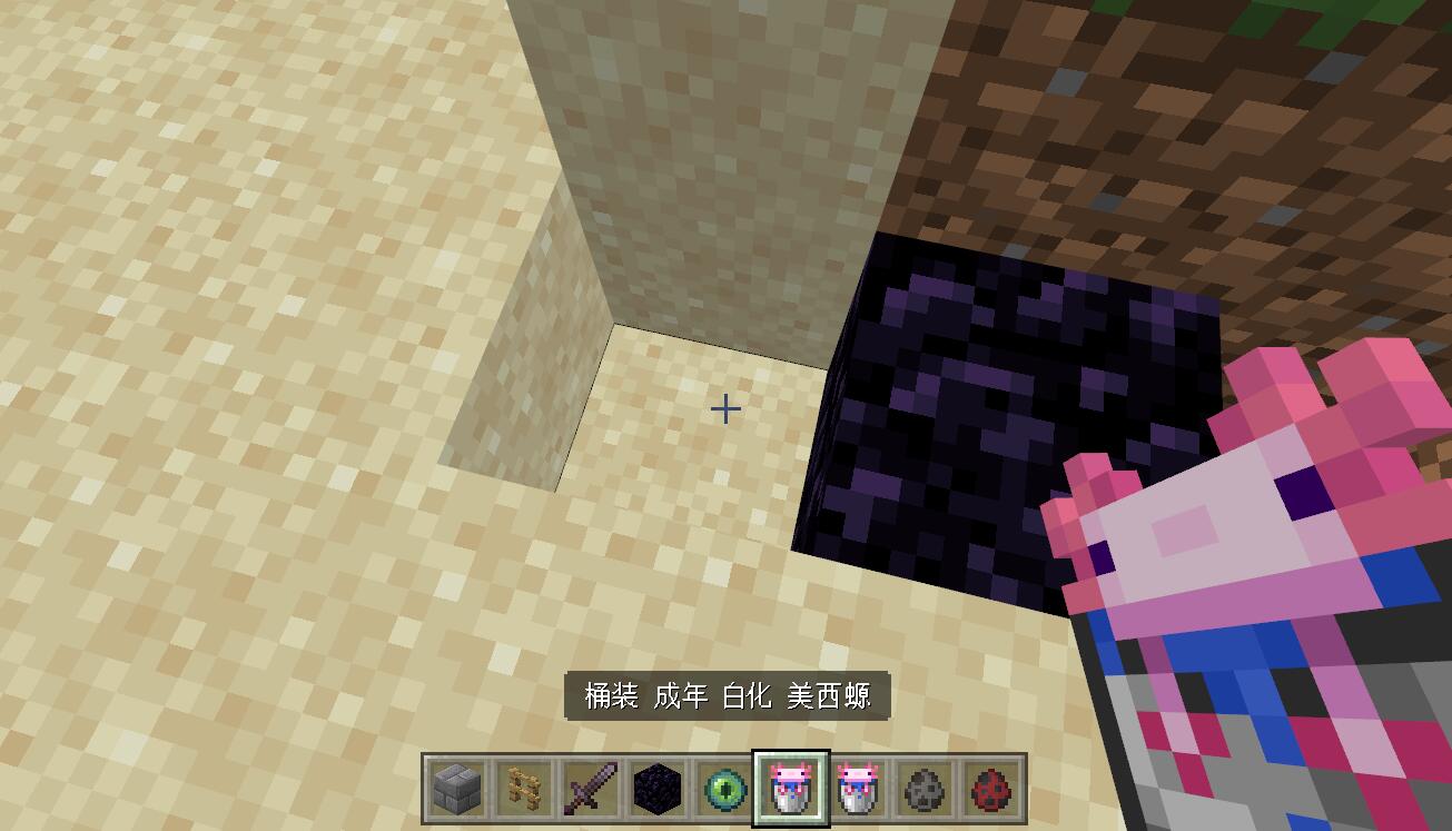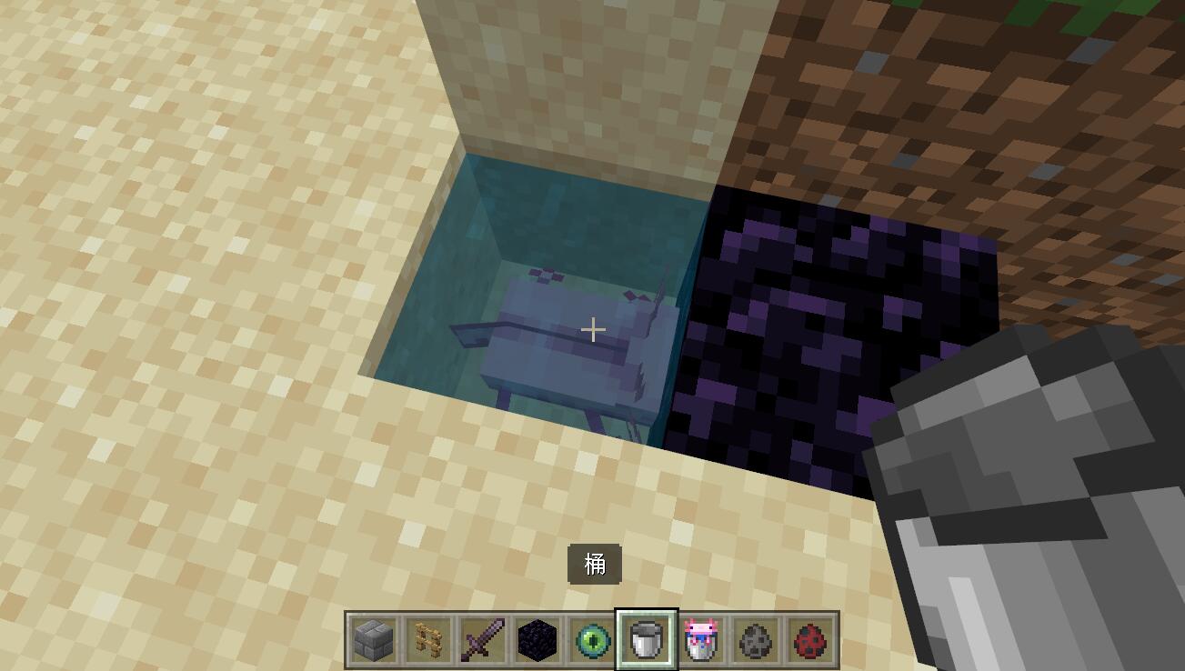 拿著桶對著美西螈,然後按右鍵就可以裝在桶里了。