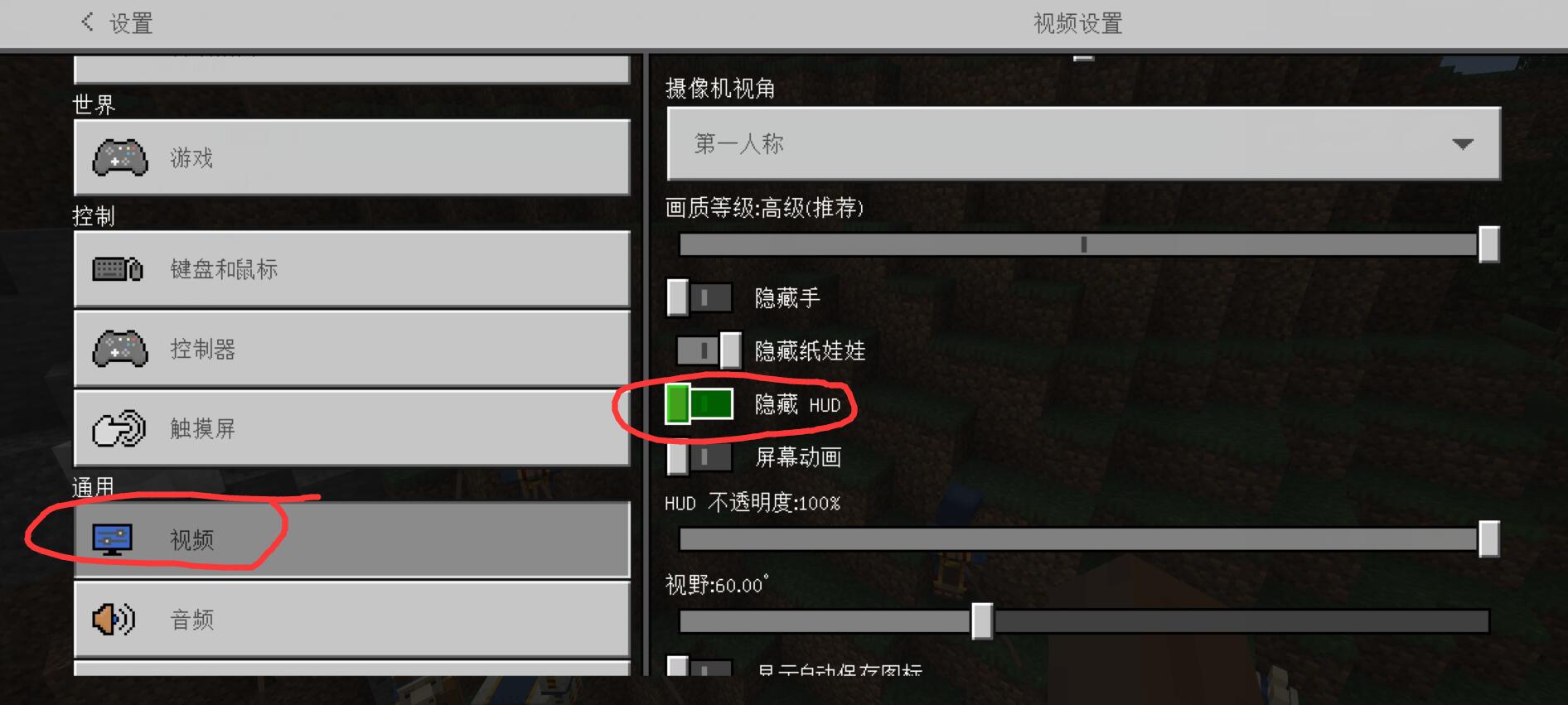 首頁 我的世界 問答 我的世界手游物品欄沒了怎麼辦? 2022-09-02 去設置里把隱藏HUD關閉即可。1,首先點擊上方圈住區域,把設置點出來。2,然後進入設置,點擊左側的視頻,把右側隱藏HUD關閉。3,就可以顯示物品欄了。