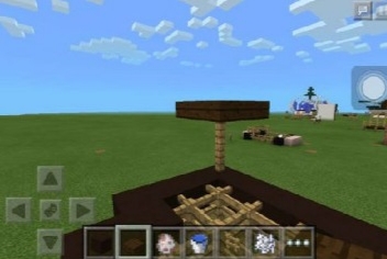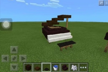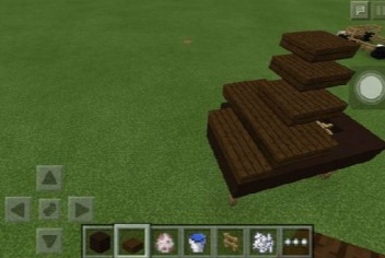 2、之後加上琴鍵和內部的小格子。在地平面放三個相連的雲山木,然後再往上搭一格方塊,放置上方石英台階用。