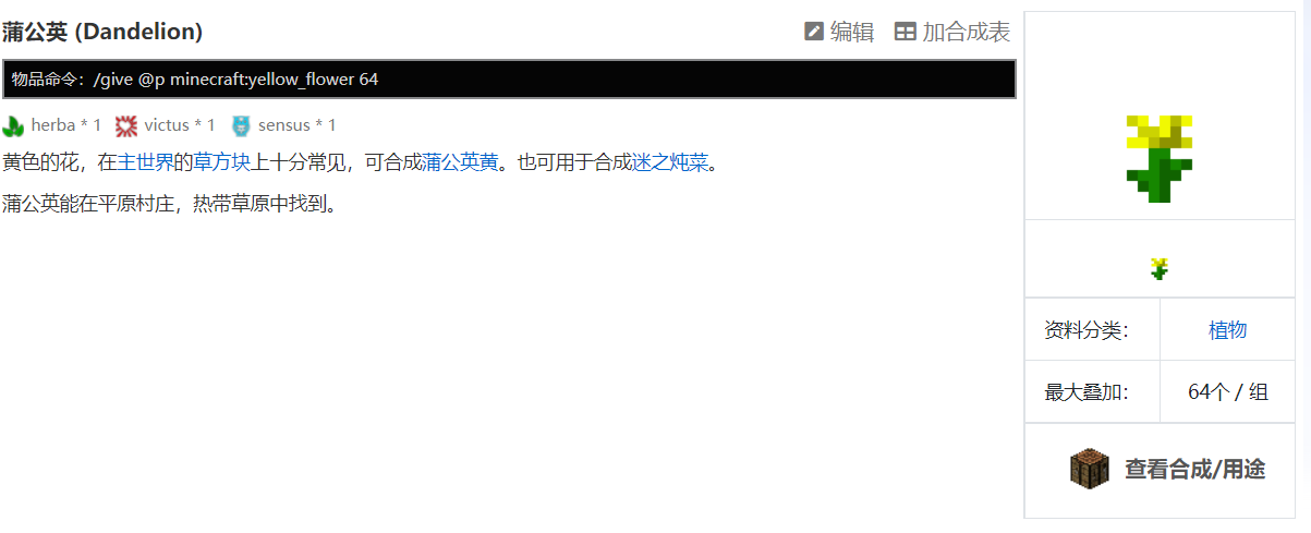 1、在遊戲我的世界中,蒲公英能在平原村莊,熱帶草原中找到。
