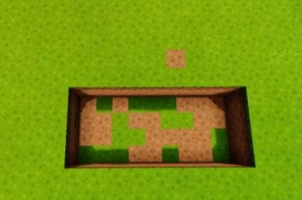 2、然後在這塊地上挖出寬度為9個方塊,長度為4個方塊,深度為2個方塊的凹槽。