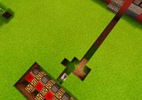 8、在通道的末端地面上放上草方塊,草方塊上放置一個拉桿。並將拉桿拉下,可以看到紅石線路已經被激活了,永動機已經不動了。