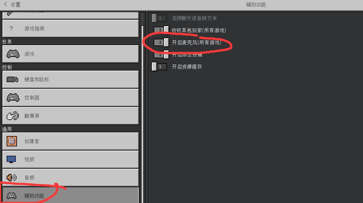 首頁 我的世界 問答 我的世界怎麼開麥克風? 2022-09-03 去設置輔助功能里把麥克風打開就可以了。1,首先我們按ESC進入設置,點擊左側的設置按鈕。2,然後往下滑動找到輔助功能,把右側的開啟麥克風選項打開就可以了。