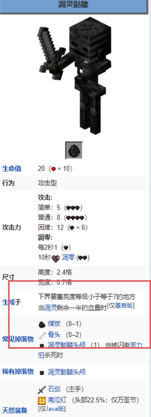 首頁 我的世界 問答 mc凋零骷髏生成機制是什麼? 2022-09-03 凋零骷髏是生成在下界要塞裡面的怪物,生成幾率很小攻擊手段是拿著他的石劍來砍你,並且砍到你後悔對你造成凋零效果(凋零效果是讓玩家血槽都變成黑色並持續扣血,目前只有凋零王,凋零骷髏和凋零玫瑰做得到凋零效果。)