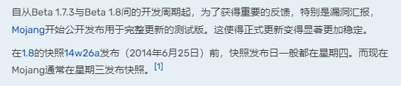 2、在版本中的YYwWWn的「YY」代表是兩位數的年份,第一個單獨的「w」代表的是工作的周期,「WW」為兩位數的一年內的周數,「n」為特殊的標識符——從字母「a」開始,然後是「b」 ,並以此類推——代表了一周之內發布快照的個數。目前最高的字母為「e」。