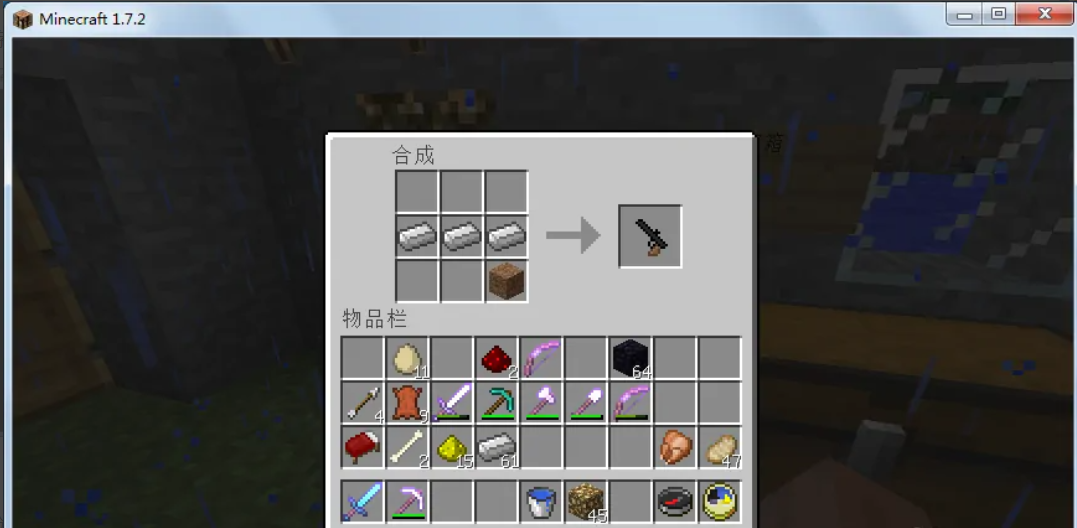 4、在工作台的合成欄里放置下面的材料就可以合成槍支。(如下圖所示)