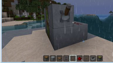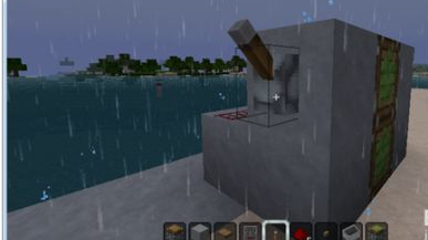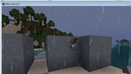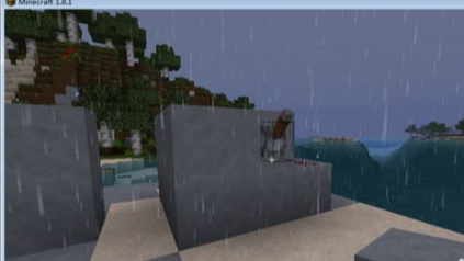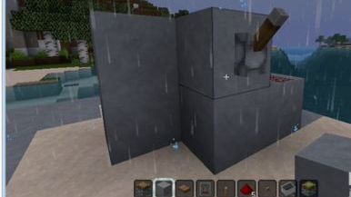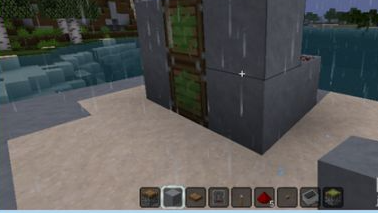1、首先我們像這樣堆三塊石頭,在上面鋪上紅石粉末。