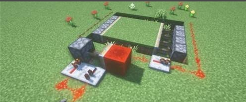 1.找到一片空地,挖出一個6*7的坑,中間部分留下一個4*4的方塊,用來種植鮮花,准備幾個活塞,放入剛才挖出來的土坑中,用一個粘性活塞和一個紅石做成發動裝置,放在土坑的前方。