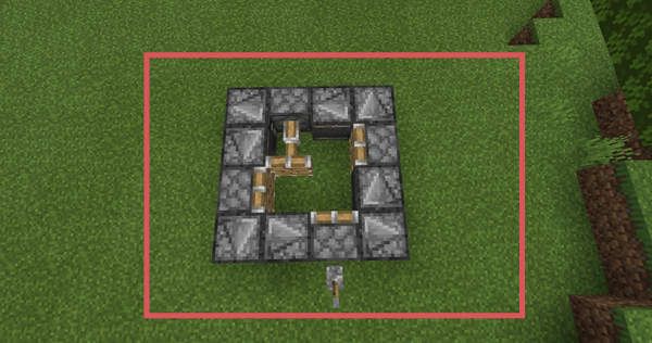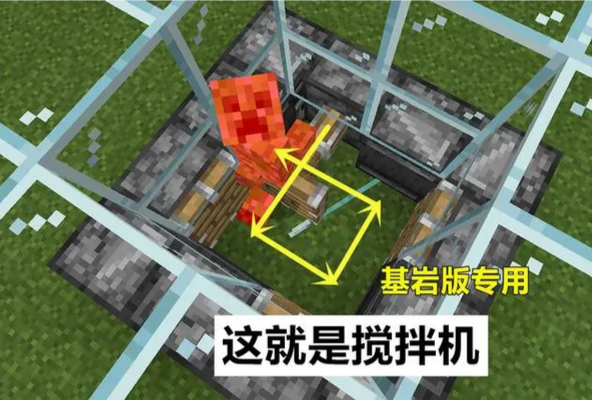 2、擺放完畢後,4個活塞便會自動運作,為了便於控制,你還需要放置一個拉桿作為啟動開關。至此三叉戟攪拌機便已完成。