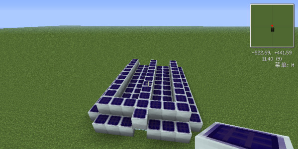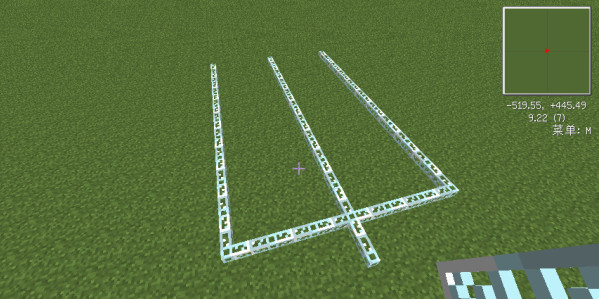 1、首先我們先選擇一塊平地,當然屋頂也行。每條線相隔2格,將導線放好,如下圖所示