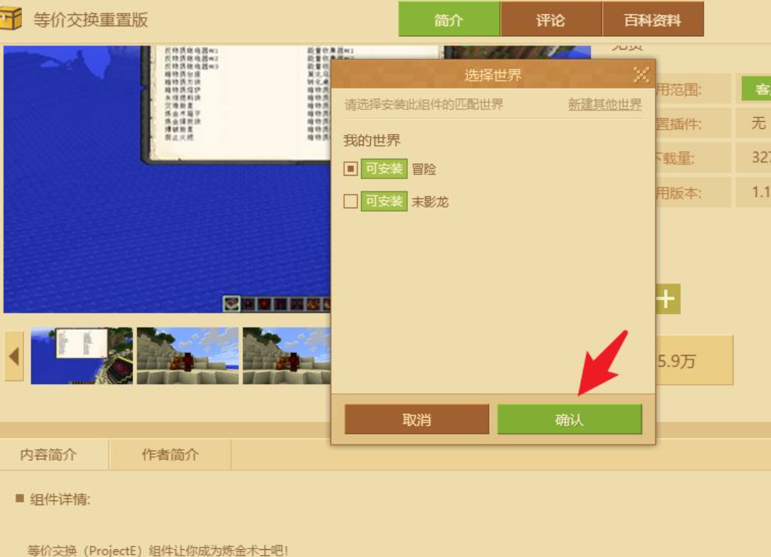 1.訂閱【等價交換重置版】,安裝到指定世界。