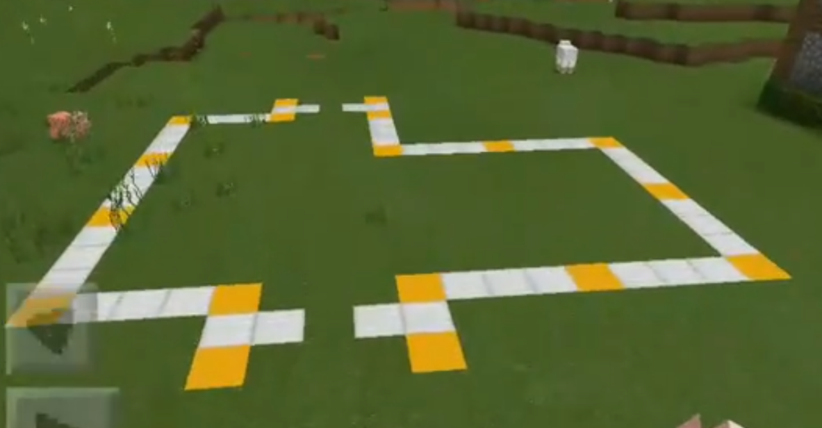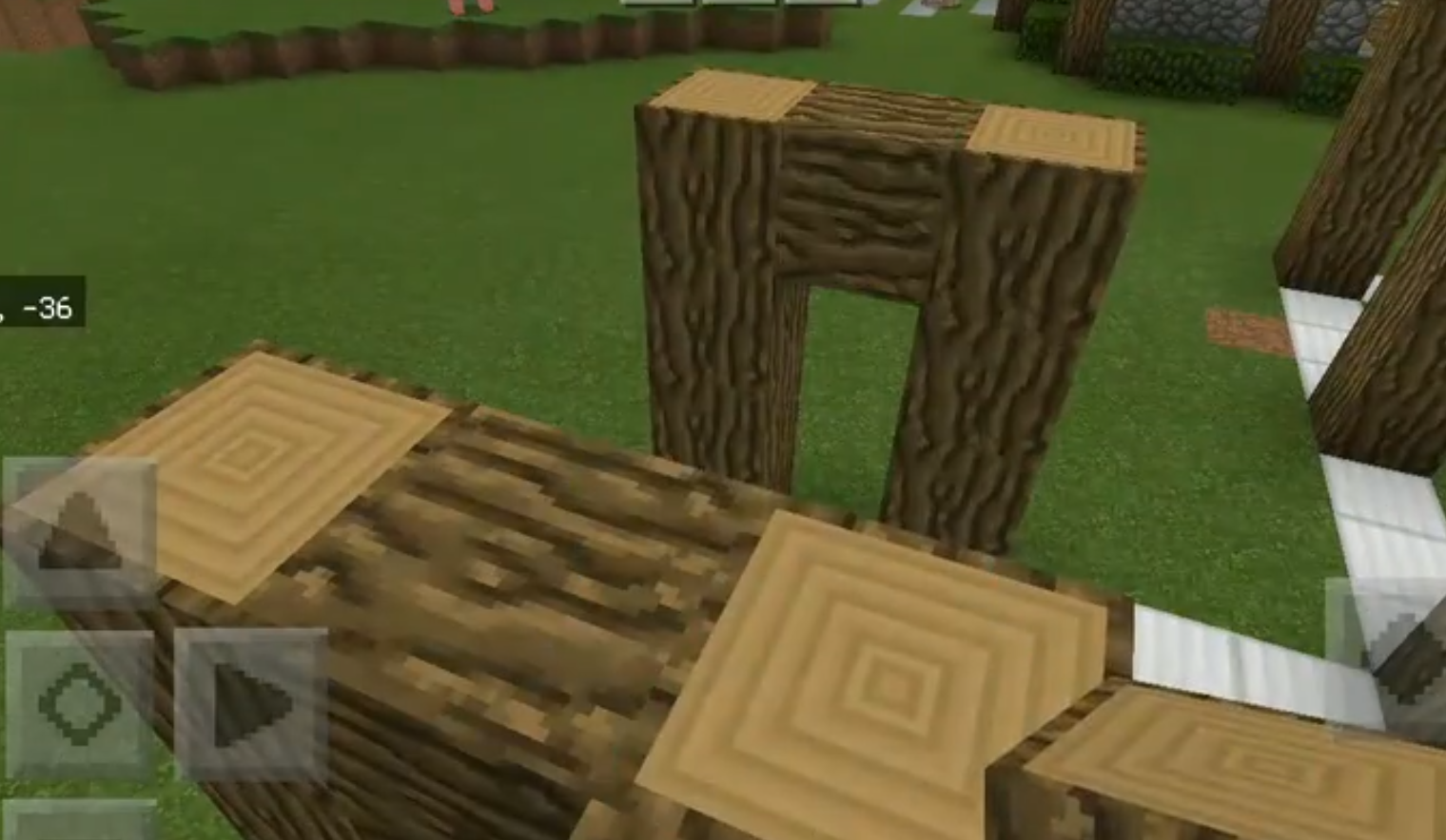 2、在框架的關鍵位置,也就是黃色區域分別搭上四個橡木,然後在最上層用橡木連接。
