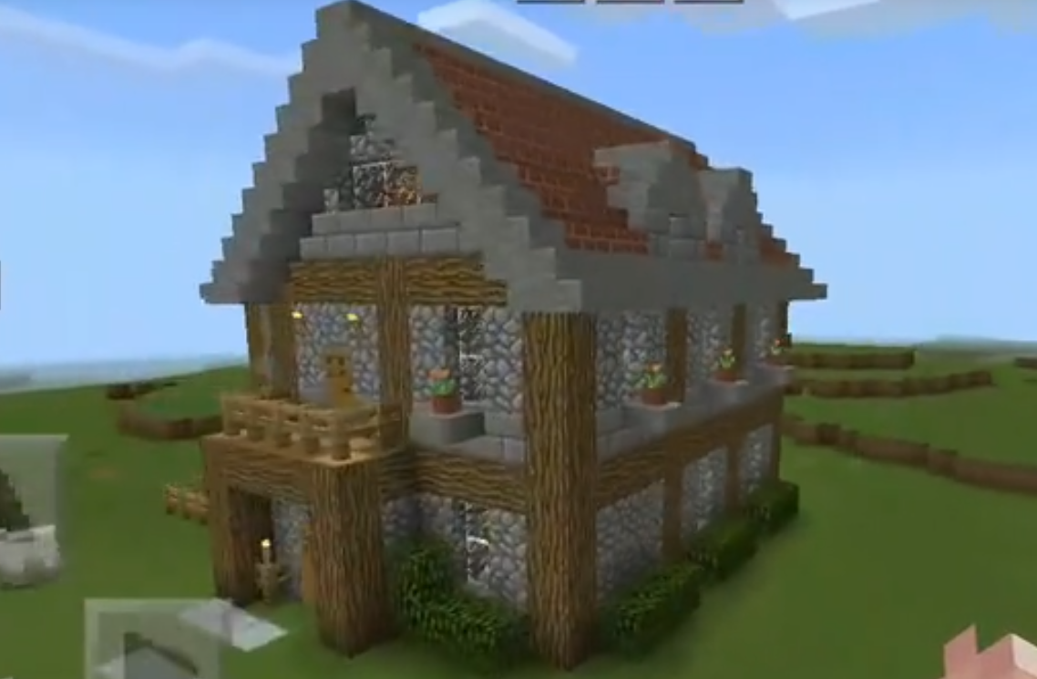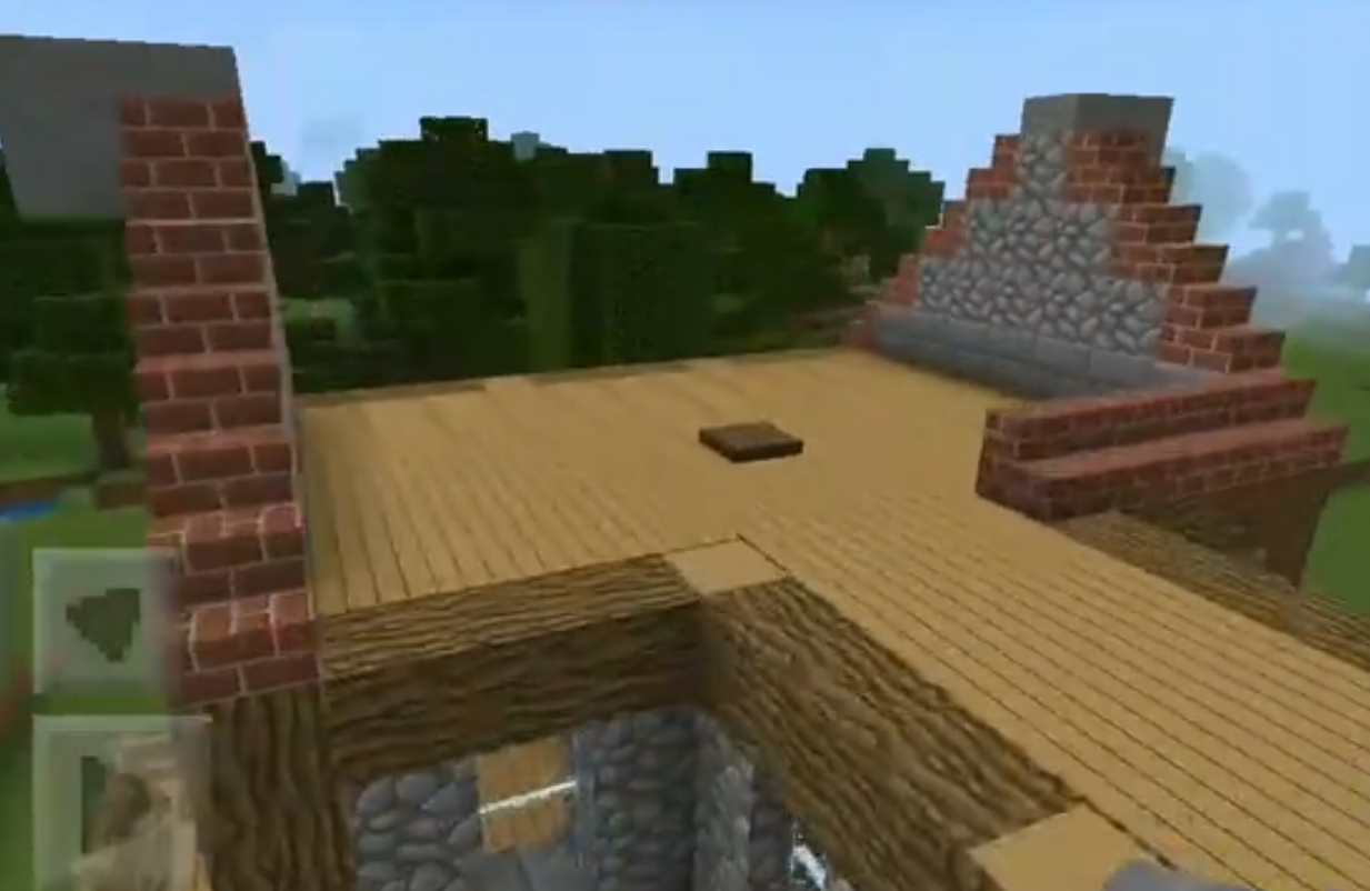 8、搭完樓梯回到二樓按一樓的方法搭木頭框架,填石材和玻璃。