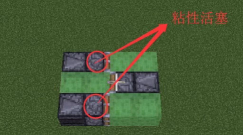 1.第1步:選擇做飛機需要的高度,先擺放活塞,然後將兩個粘液塊放置在活塞的左邊。