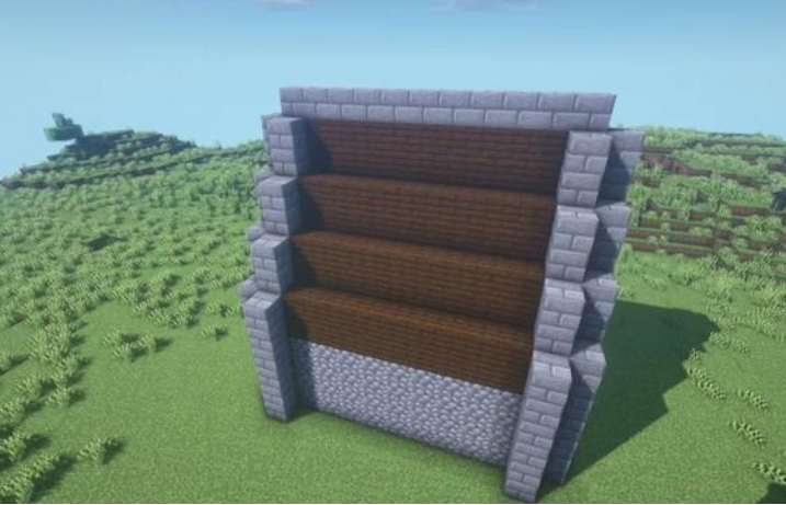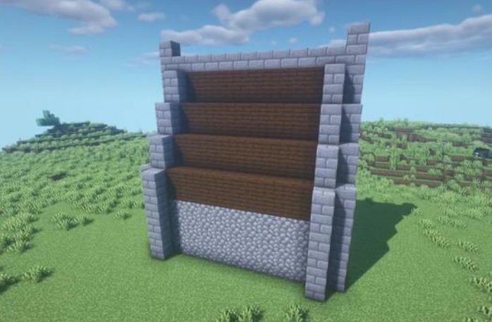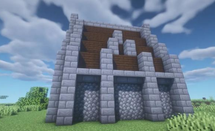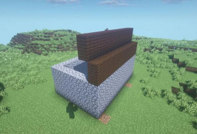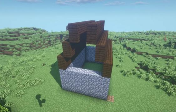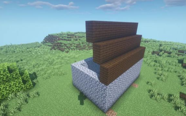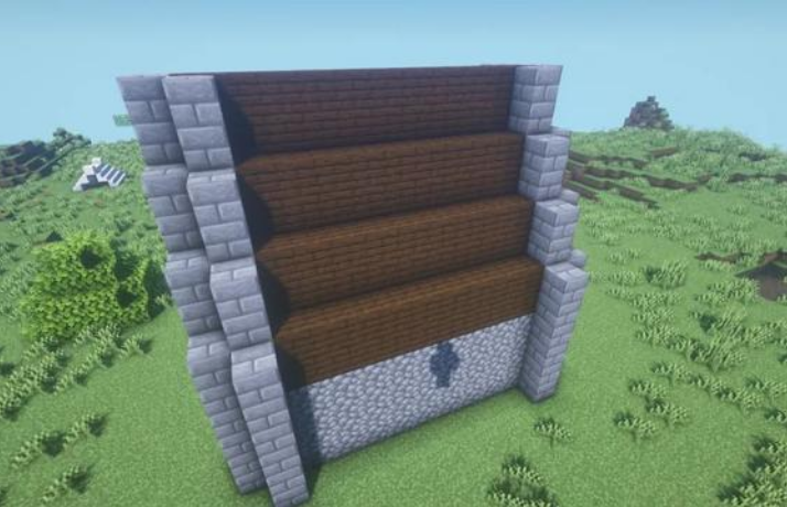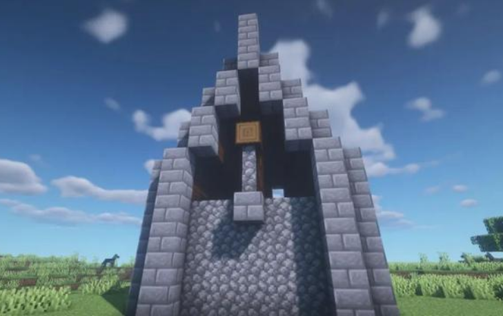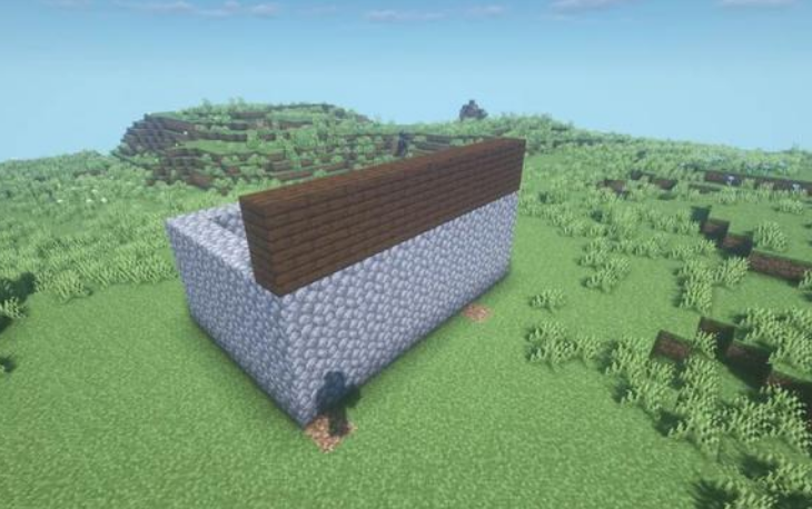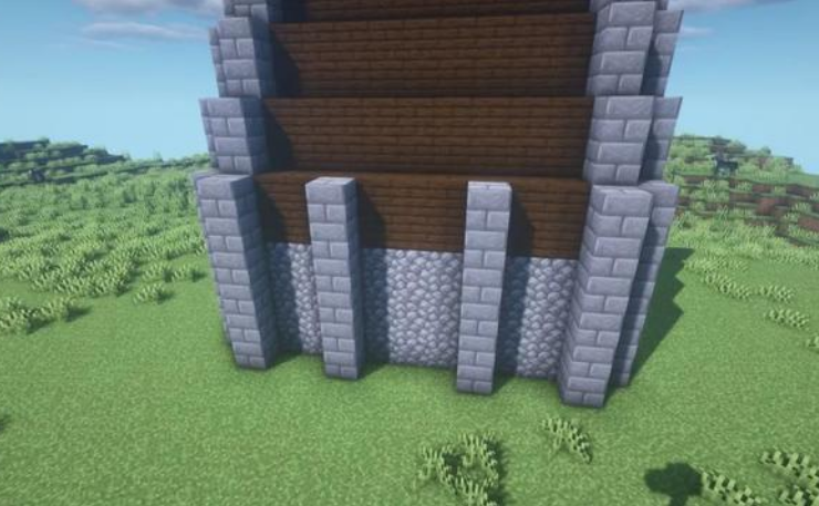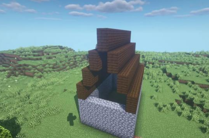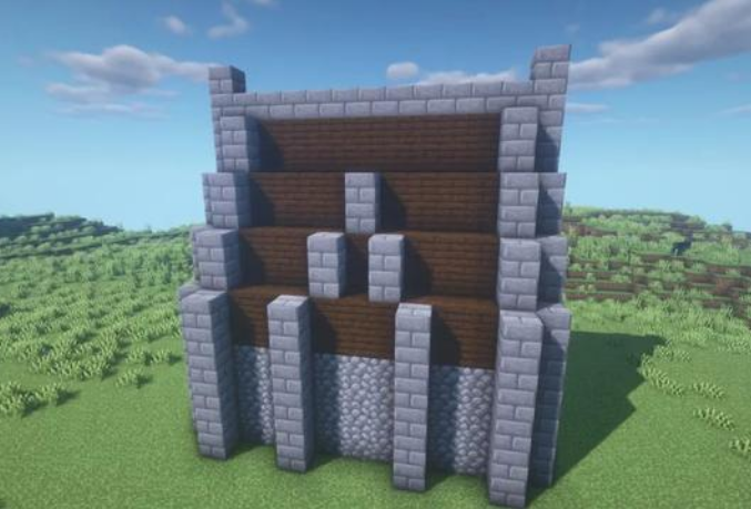 15、在建築的兩側放置一塊石磚,一塊圓石牆和一根圓木