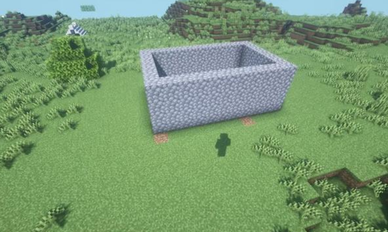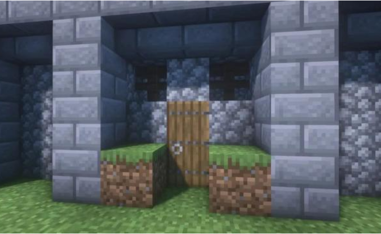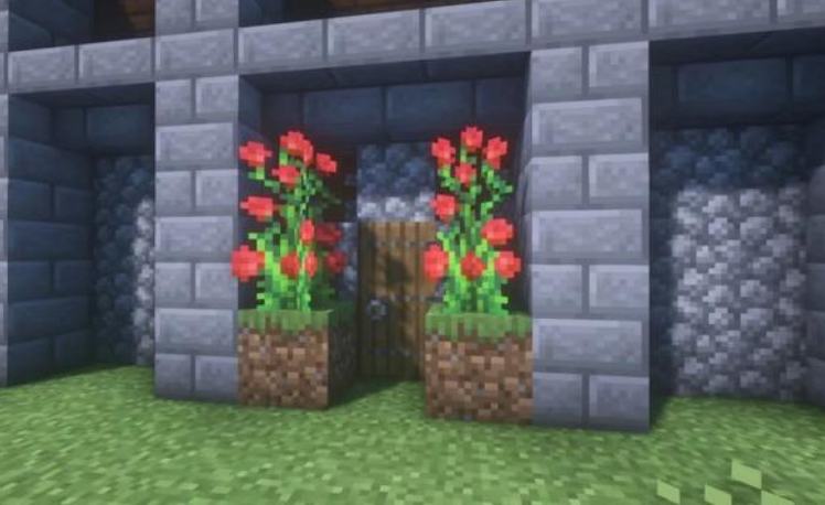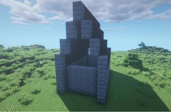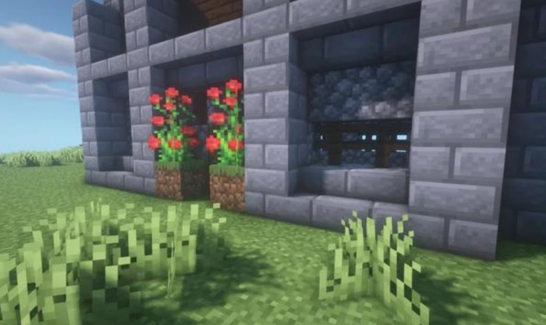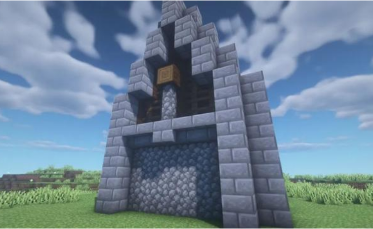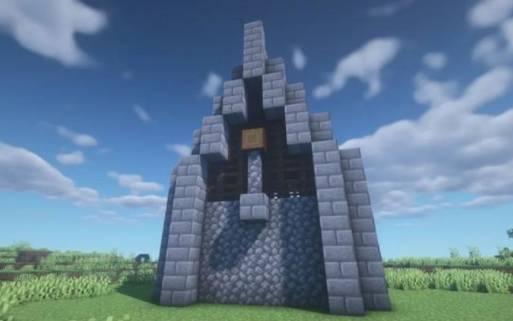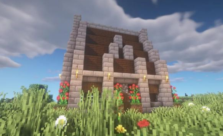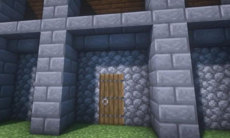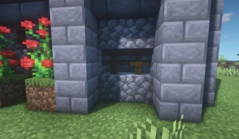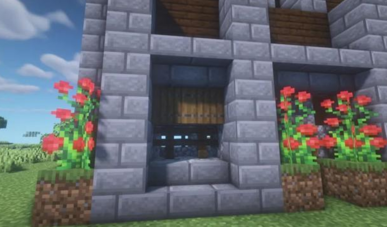 15、在建築的兩側放置一塊石磚,一塊圓石牆和一根圓木