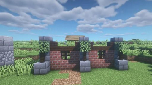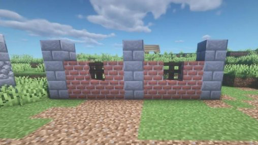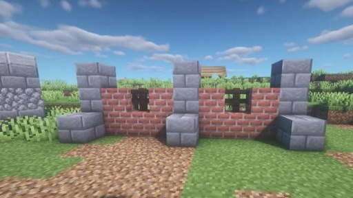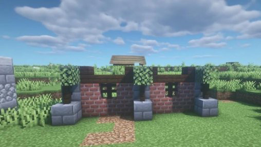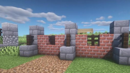 接著在柱子間放置磚塊和柵欄,完成基本的牆面。