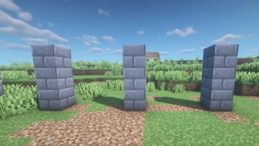首先用三格高的石磚做成三根柱子,它們之間相距三格。