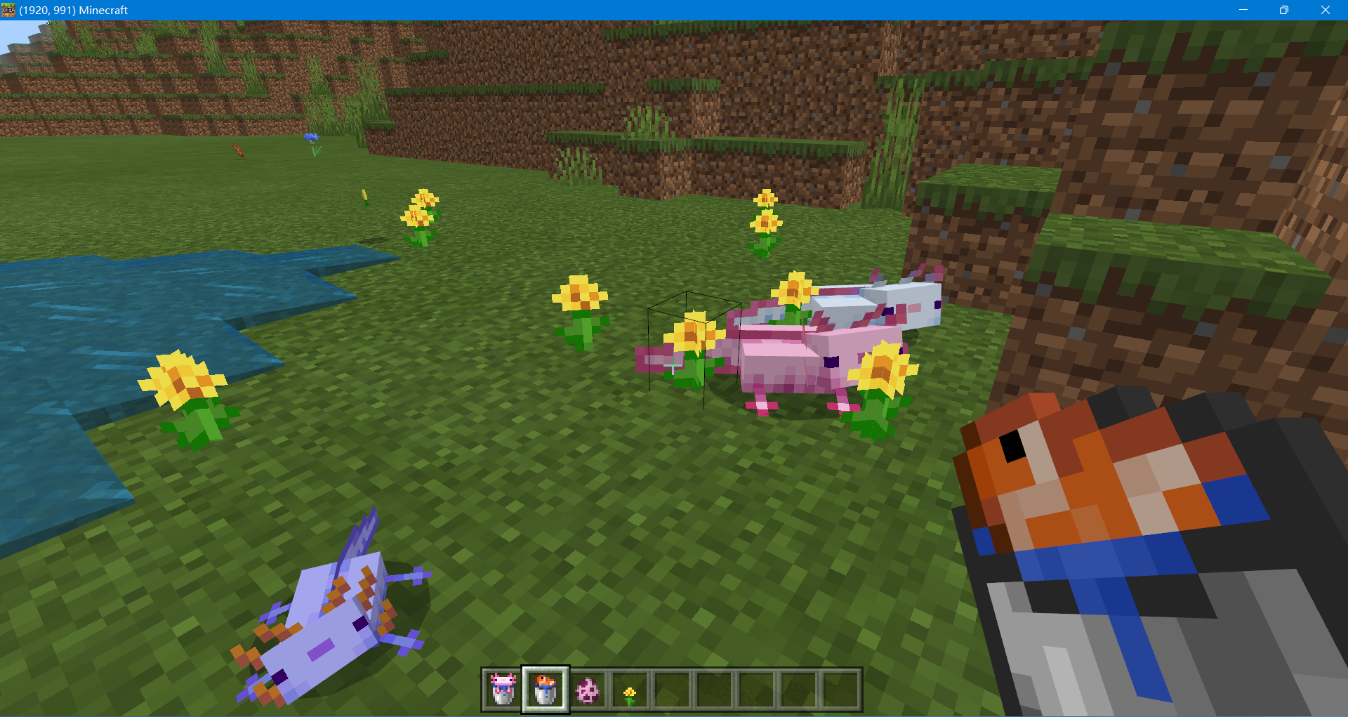 成年美西螈可以通過餵食熱帶魚或熱帶魚桶繁殖,使用熱帶魚桶餵食美西螈後熱帶魚桶會變為空桶。繁殖之後會生成1隻幼年美西螈和1-7經驗值,並且雙親在5分鐘內不再能繁殖。幼年美西螈有1⁄1200的幾率生成稀有的藍色變種,否則將隨機選擇其雙親的變種之一生成。