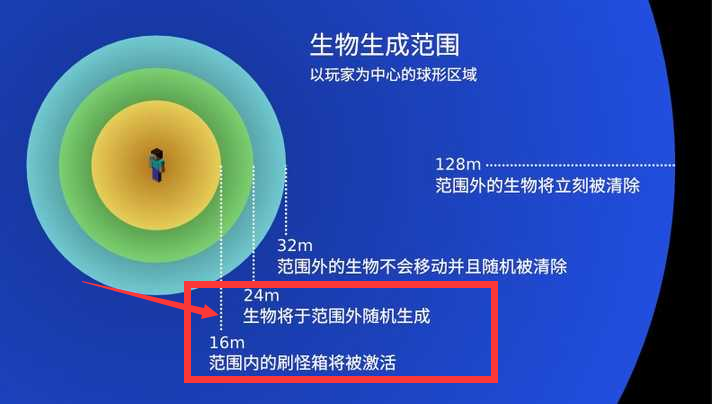首頁 我的世界 問答 網易我的世界怪物會在多遠刷新? 2022-09-06 距離玩家16格到48格之間,符合刷怪規則的實體方塊上隨機刷怪。不會再玩家周圍16格內刷怪,超過48格的區塊沒有載入,也不會刷怪。具體數據如下圖所示: