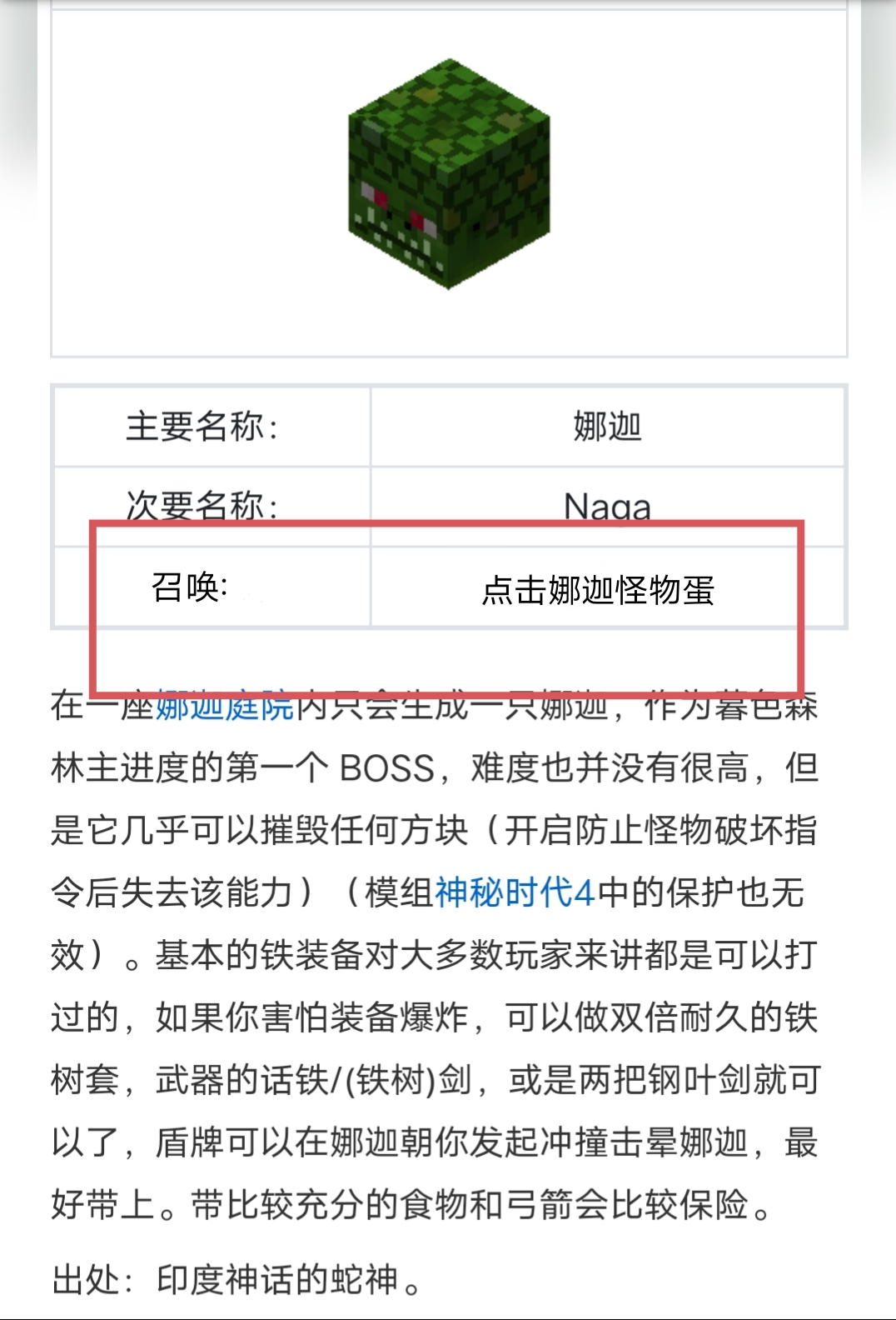 首頁 我的世界 問答 我的世界娜迦怎麼召喚? 2022-09-06 用娜迦怪物蛋類似殭屍蛋,點擊就能召喚了。接著你去暮色世界的時候,就有可能碰見娜迦了。沿著森林隨便一方向走一段時間一定能找到。它刷新在森林中的空地上,當你看見一個石製品圍起來的城牆時,恭喜你,你找到了娜迦。