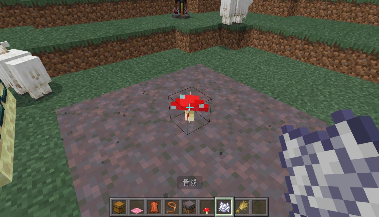 1,首先我們需要找到一個蘑菇,然後用骨粉右鍵點擊蘑菇。