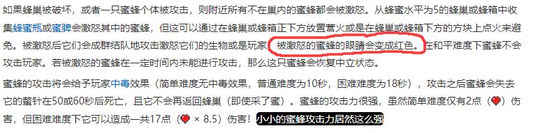 首頁 我的世界 問答 我的世界蜜蜂眼睛為什麼變紅? 2022-09-06 因為此時蜜蜂被激怒了,激怒的蜜蜂的眼睛會變成紅色。1,首先我們搜索並進入蜜蜂的相關說明。2,然後就可以在界面下方發現,蜜蜂被激怒眼睛就會變成紅色了。