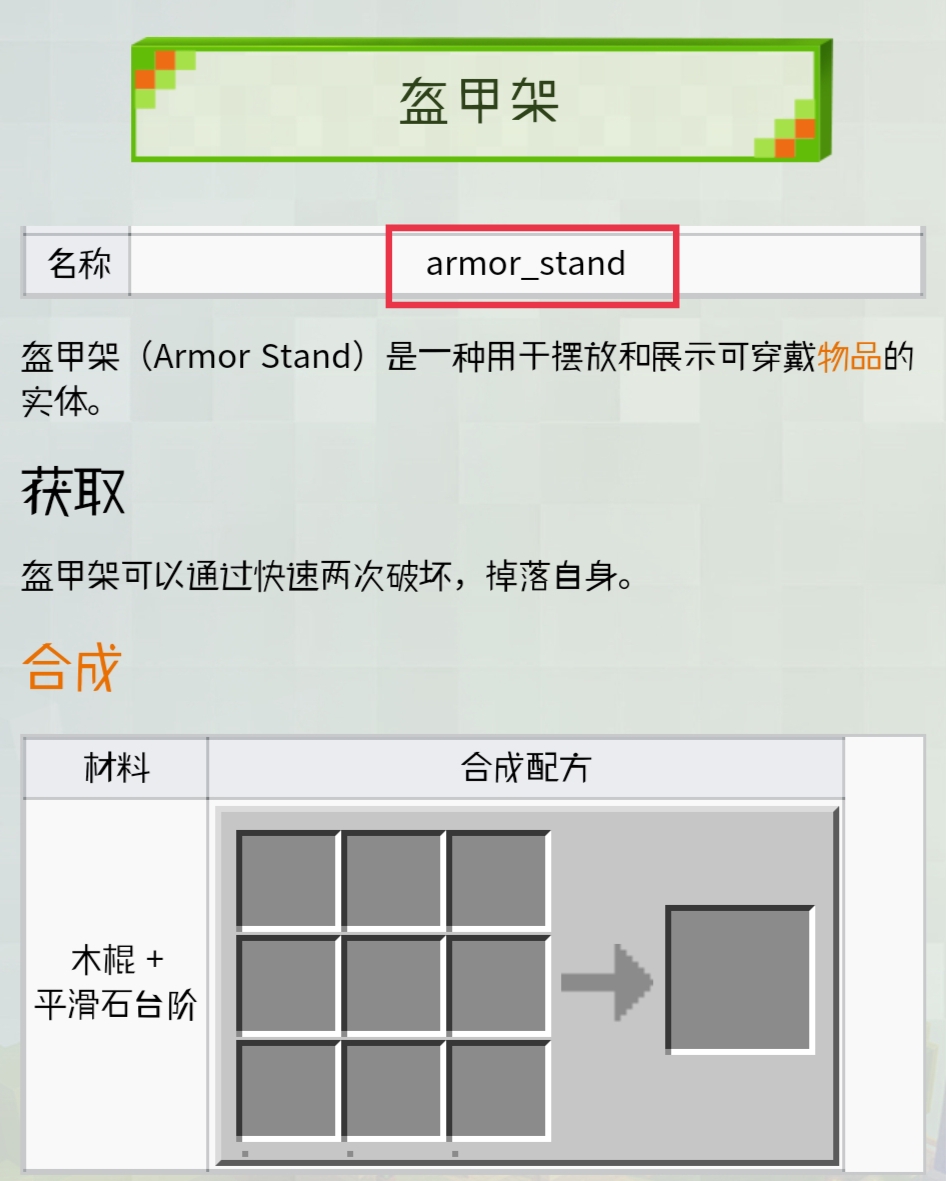 在我的世界這款遊戲中,盔甲架的英文是Armor Stand。盔甲架這個物品可以在針葉林村莊中造箭師房子里找到。