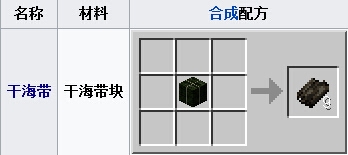 首頁 我的世界 問答 建築方塊干海帶塊的合成配方是什麼?需要搭配合成示意圖 2022-09-07 干海帶塊可用作熔爐的燃料。一個干海帶塊可提供200秒的燒煉時間,也即可燒煉20個物品,這是煤炭和木炭的2.5倍可用干海帶(干海帶可用海帶燒煉獲得)合成獲得,合成配方: