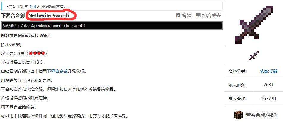 首頁 我的世界 問答 我的世界下界合金劍的英文名是什麼? 2022-09-07 下界合金劍的英文名是Netherite Sword,我們可以進入下界合金劍的說明界面,然後就可以發現下界合金劍的英文了,為Netherite Sword。