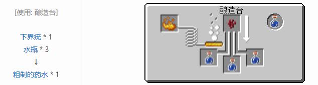 1,首先我們需要找到釀造台,使用三個水瓶和一個下界疣釀造粗製的葯水。