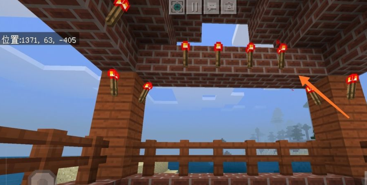 9.裝好大門之後,我們在屋檐上插上火把,保持一定的亮度,這樣就不會刷新野怪了。