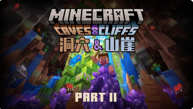 山洞與懸崖是1.18版本,1.18的新內容只有兩個:一個是地下增加了-64格,也就是洞穴更新;另一個是地上增加了64格,也就是山脈更新。升級到1.18之後,去到曾經未曾去過地方的時候,你會看到更多新的地形,主要是新的洞穴和新的山脈。