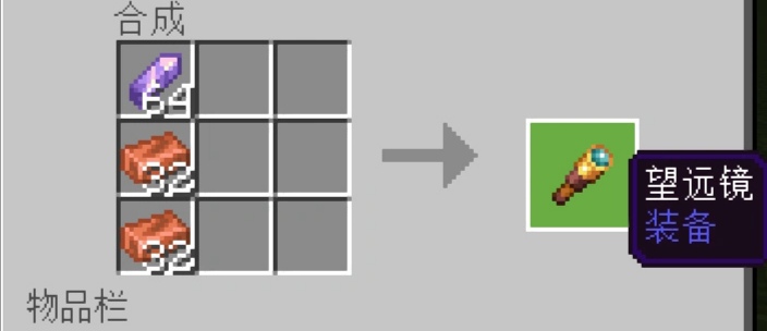 首頁 我的世界 問答 我的世界1.17紫水晶有什麼用? 2022-09-08 在我的世界1.17版本中紫水晶的作用目前只有用於裝飾以及合成望遠鏡、還可以通過加玻璃來合成遮光玻璃等作用(如下圖所示)。1、望遠鏡合成2、遮光玻璃合成3、裝飾