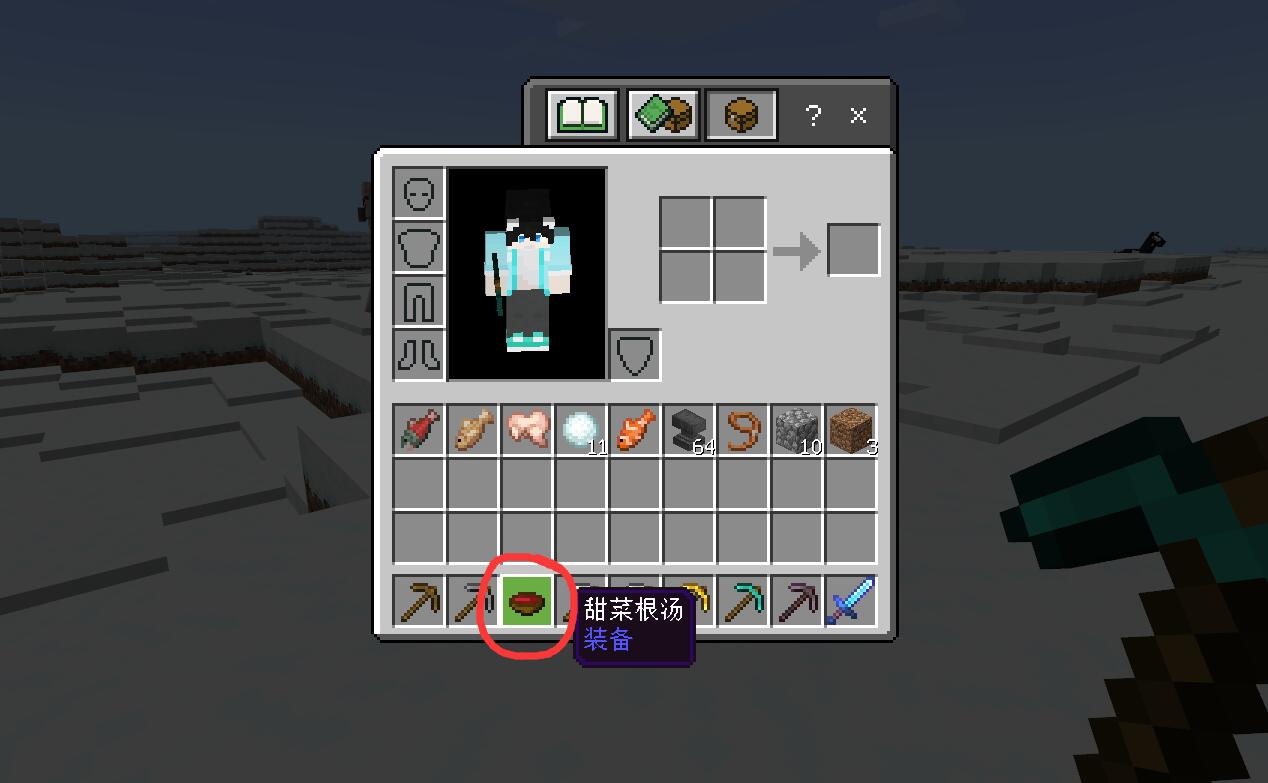 1,首先我們進入遊戲,開啟創造模式,在目錄拿一組甜菜湯。