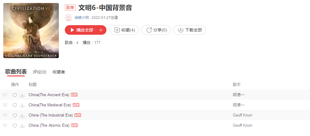 首頁 文明6 問答 文明6中國bgm是哪首? 2022-09-09 中國的BGM是《茉莉花》,遊戲中不同時代的BGM會有所差異(使用的樂器等會有所不同),其中遠古時代由旅美古箏演奏家夏冰操刀。負責中世紀和工業時代BGM的是Knorr。Knorr和Boucher一起製作了原子時代的BGM。