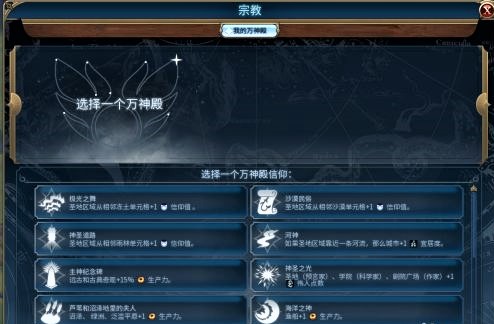 俄羅斯的宗教選擇首選是極光之舞,聖地獲得緊鄰凍土時信仰 1(找不到凍土的俄羅斯就不要考慮宗教了)。收穫女神也不錯,建築工收穫獎勵資源或移除地貌(例如砍伐森林)時,獲得等同於其一次性收益的信仰。包括追隨者信條,另一個信條建議選擇宗教建築信條。